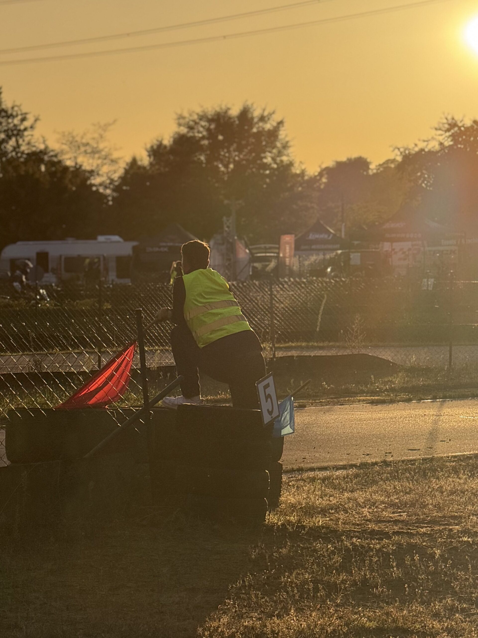 Frisch ausgeschlafen startete der Samstag bei trockenen Verhältnissen um 8Uhr mit Frühsport um sich anschließend mit Frühstück für die ersten Turns zu verpflegen. So konnte dann um 10Uhr der Fahrbetrieb in drei Gruppen aufgenommen werden. Der Samstag war dann zwischen den einzelnen Turns und Instruktionen mit Theorieeinheiten gespickt um die Umsetzung in der Praxis zu verbessern. Linienwahl, Flaggenkunde und auch der richtige Rennstart war Inhalt dieser Theorieeinheiten. Am Nachmittag erfolgte dann für viele Teilnehmer die erste Startübung, natürlich freiwillig! Dieses Angebot fand großen Anklang im Fahrerlager und so wurde in drei Gruppen der Ablauf eines Rennstarts mit Outlap, Startaufstellung, Warm-Up Runde, dem Rennstart und der Inlap geübt.