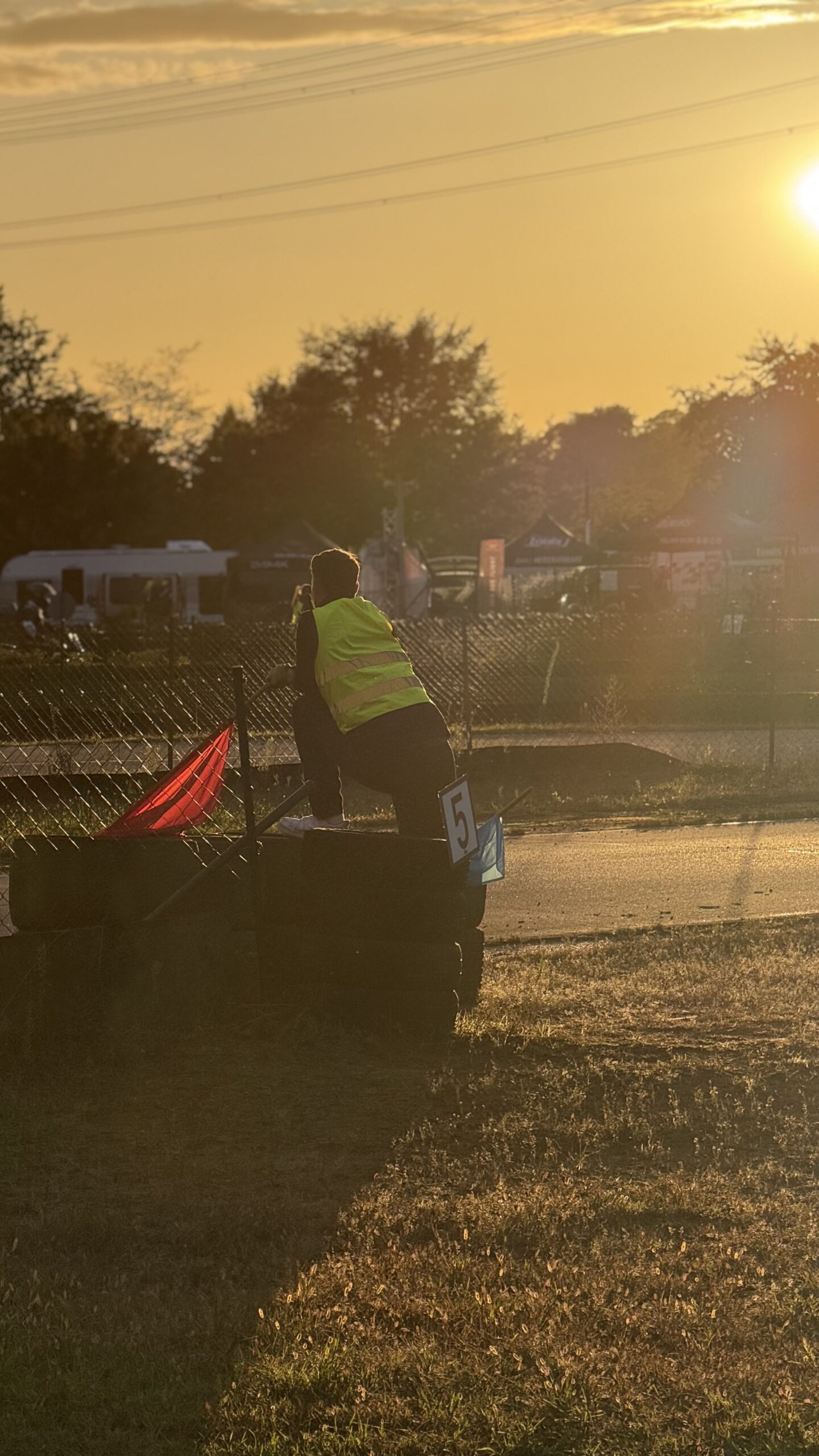 Frisch ausgeschlafen startete der Samstag bei trockenen Verhältnissen um 8Uhr mit Frühsport um sich anschließend mit Frühstück für die ersten Turns zu verpflegen. So konnte dann um 10Uhr der Fahrbetrieb in drei Gruppen aufgenommen werden. Der Samstag war dann zwischen den einzelnen Turns und Instruktionen mit Theorieeinheiten gespickt um die Umsetzung in der Praxis zu verbessern. Linienwahl, Flaggenkunde und auch der richtige Rennstart war Inhalt dieser Theorieeinheiten. Am Nachmittag erfolgte dann für viele Teilnehmer die erste Startübung, natürlich freiwillig! Dieses Angebot fand großen Anklang im Fahrerlager und so wurde in drei Gruppen der Ablauf eines Rennstarts mit Outlap, Startaufstellung, Warm-Up Runde, dem Rennstart und der Inlap geübt.